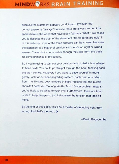 It contains logic puzzles to improve your deductive logic, lingual and lateral thinking skills. It is an accessible but stimulating collection of brain training puzzles designed by a team of experts specifically to train your left brain deductive and numerical abilities. Language and logic skills are processed in the same manner by the left hand side of the brain and are vital to our everyday lives. This book is the perfect way to hone these left brain skills and thus improve your problem solving ability, your deductive and intuitive reasoning capabilities, your logic and lateral thinking prowess and much more. Each puzzle has a difficulty rating and a suggested time limit so that you can easily find puzzles that suit your current skill level and progress to more challenging ones as your mental agility increases. This book includes over 125 full colour puzzles, solutions with comprehensive explanations, a graded difficulty rating system. Answers included.