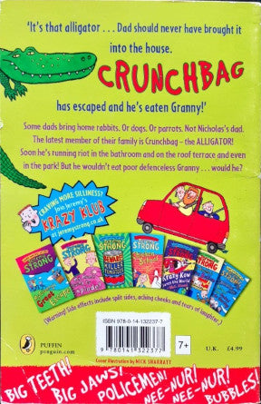 ‘It’s that alligator . . . Dad should never have brought it into the house. Crunchbag has escaped and he’s eaten Granny!’ Some dads bring home rabbits. Or dogs. Or parrots. Not Nicholas’s dad. The latest member of their family is Crunchbag – the ALLIGATOR! Soon he’s running riot in the bathroom and on the roof and even in the park! But he wouldn’t eat poor defenceless Granny . . . would he?