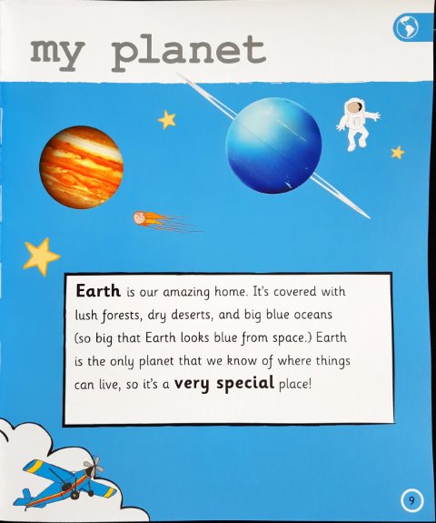 Covering a big world of discovery, My Encyclopedia of Very Important Things explores animals, people, planets, and, very importantly, you! Learn what happens when you skin your knee and find out what makes someone a cousin instead of a sister. Meet vegetarian dinosaurs, fluffy pets, and big blue whales. Explore the past with cavemen, Vikings, and pharaohs. Follow the life of a plant, from seed to flower, and see what clouds are made out of.