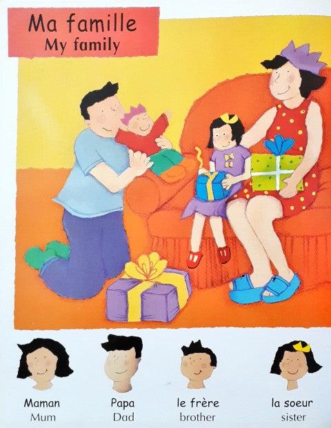 This delightful French English word book is ideal for learning first words in French. The everyday scenes are filled with detail and will help children to build up a basic French vocabulary. Each word has separate picture and word label in both French and English.