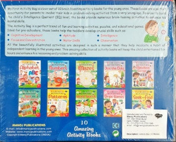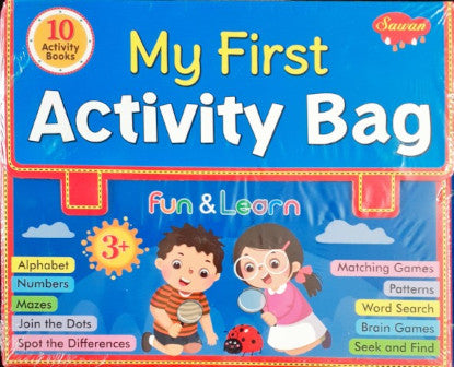 My First Activity Bag is a box set of 10 brain boosting activity books for the young ones and includes books on Alphabet related activities, Numbers related activities, Mazes, Join the Dots, Matching Games, Spot the Difference, Patterns, Word Search, Brain Games, Seek and Find. These books are a perfect opportunity for parents to involve their kids in problem solving activities from a very young age. In order to build the child's Intelligence Quotient (IQ) level, the books provide numerous brain teasing activities to enhance the mental skills. The Activity Bag is a perfect blend of fun and learning activities, puzzles and educational games. Ideal for pre schoolers, these books help the toddlers develop crucial skills such as Cognitive Development, Aptitude, Intelligence, Focus and Concentration, Motor Skills and Observation. All the beautifully illustrated activities are designed in such a manner that they help inculcate a habit of independent learning in the young ones. This amazing collection of activity books will keep the child entertained for hours and enhance his reasoning and problem solving skills.