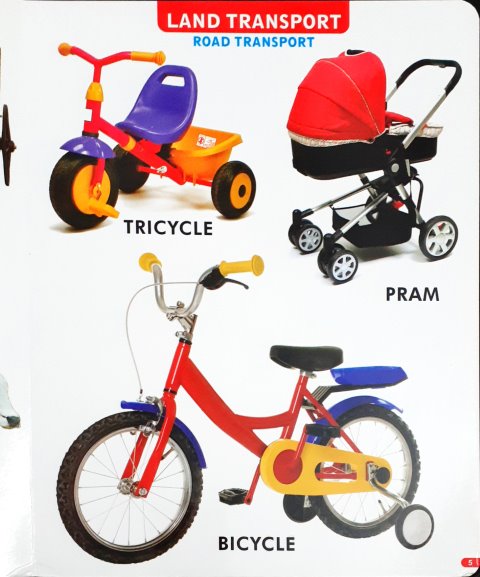 This board book contains various modes of transport with big bright pictures easy to recognize for the child