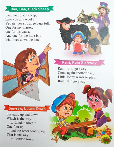 Board Book with multiple Nursery Rhymes with bright big pictures to learn & remember