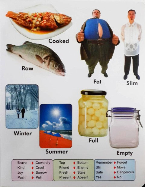 Board book with multiple opposites to learn & remember with pictures and a seperate list is also there on every page