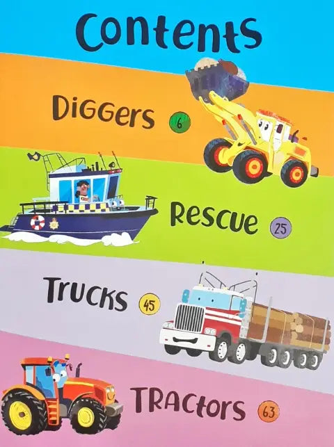Boasting engaging text and lively illustrations, this hardback gift book is ideal for bedtime reading, featuring bright and characterful depictions of tractors, trucks, diggers, and emergency vehicles.