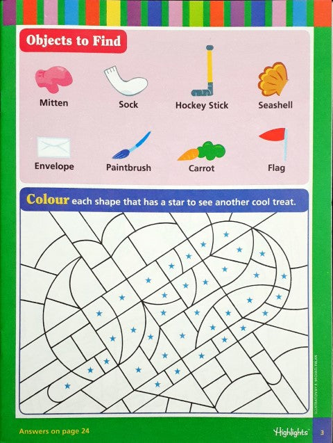 Ideal for beginning puzzlers, these engaing books introduce children to the fun and challenge of finding familiar objects tucked into unexpected places. Each book features both vibrant full colour puzzles and classic black and white puzzles with full colour stickers to mark each hidden object. A variety of additional drawing activities and puzzles in each volume round out the fun. Answers are provided in the back of the book.