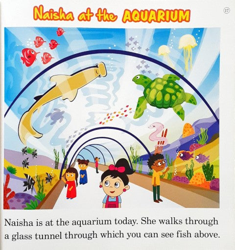 This book touches a child's life with things are everyday and familiar. The stories, featuring Naisha have visits to places the child will understand and relate to even as he/she learns new words and concepts. Travel with the child and make it exciting as you read aloud from these colourful pages