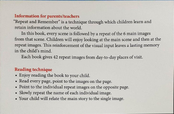 This book touches a child' life with things are everyday and familiar. The stories, featuring Naisha have visits to places the child will understand and relate to even as he/she learns new words and concepts. Travel with the child and make it exciting as you read aloud from these colourful pages