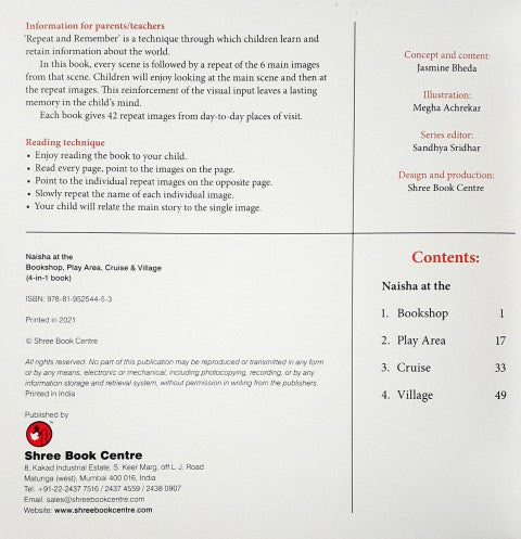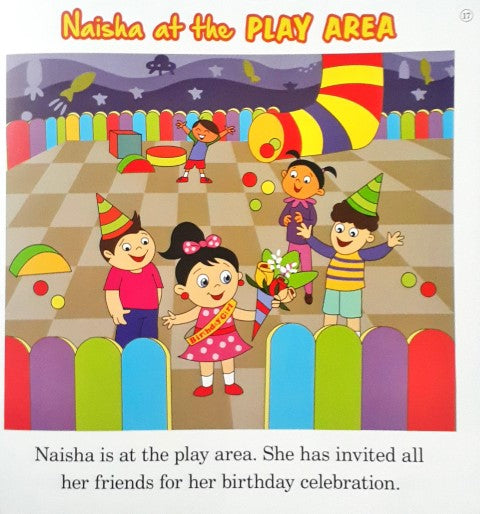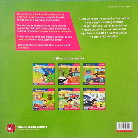 This book touches a child's life with things are everyday and familiar. The stories, featuring Naisha have visits to places the child will understand and relate to even as he/she learns new words and concepts. Travel with the child and make it exciting as you read aloud from these colourful pages