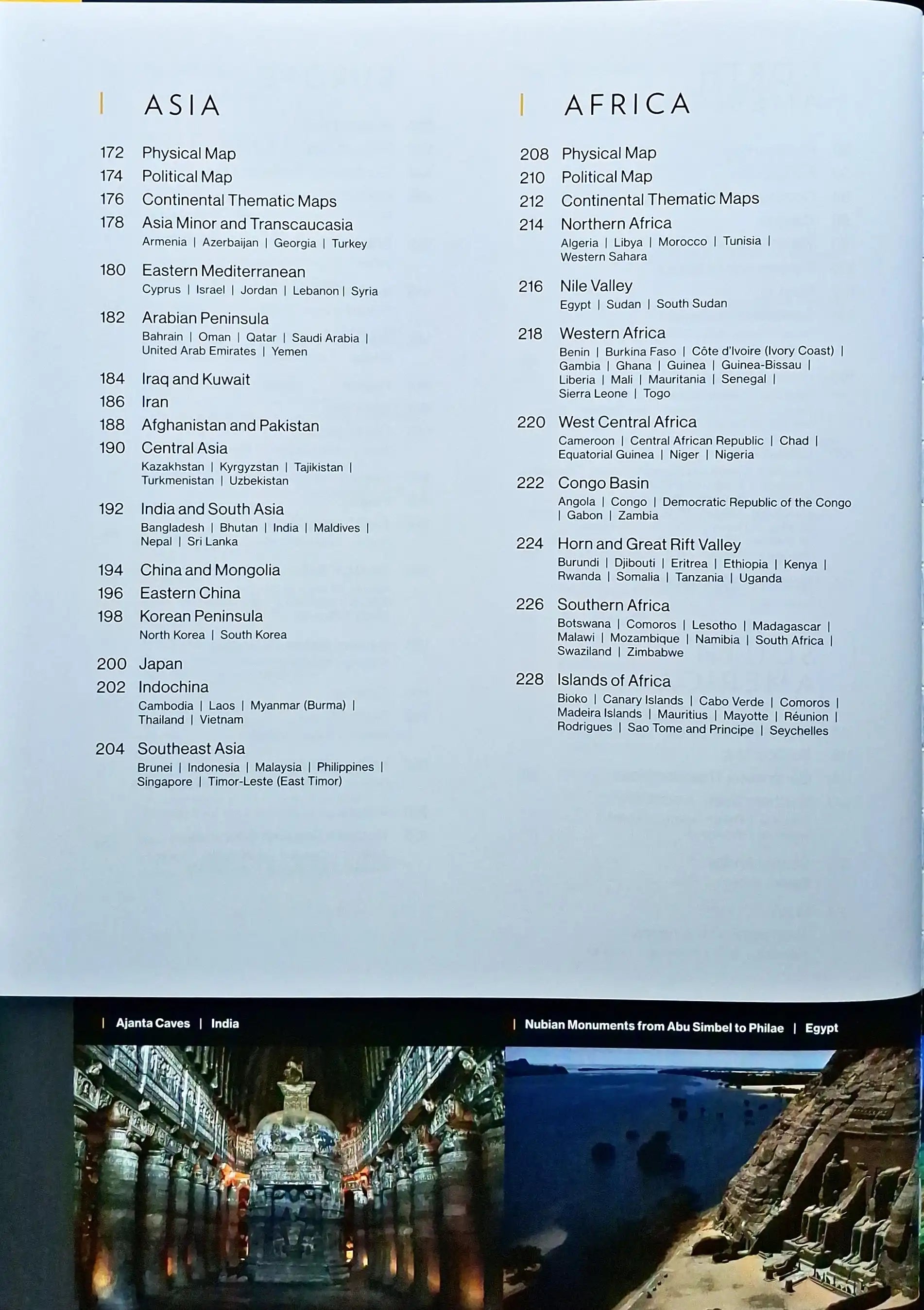 This jumbo sized Atlas with more than 700 stunning maps, illustrations and photographs including the natural and cultural treasures of world heritage sites. A breathtaking blend of National Geographic’s world-class photography and cutting-edge cartography, this fully updated visual atlas is a captivating and authoritative guide to our planet. This new edition is a treasure trove for history enthusiasts, current affairs followers, and map lovers. Featuring more than 200 detailed maps, 350 brand-new photographs, and the latest satellite imagery, it offers a vivid portrait of the Earth’s natural and cultural wonders—from outer space to UNESCO World Heritage Sites. Created in collaboration with top scientists, geographers, and cartographers, this atlas is an indispensable reference for families, travelers, students, and scholars alike. With every page rich in up-to-date information and visual splendor, it’s the most compelling and comprehensive visual atlas available today.