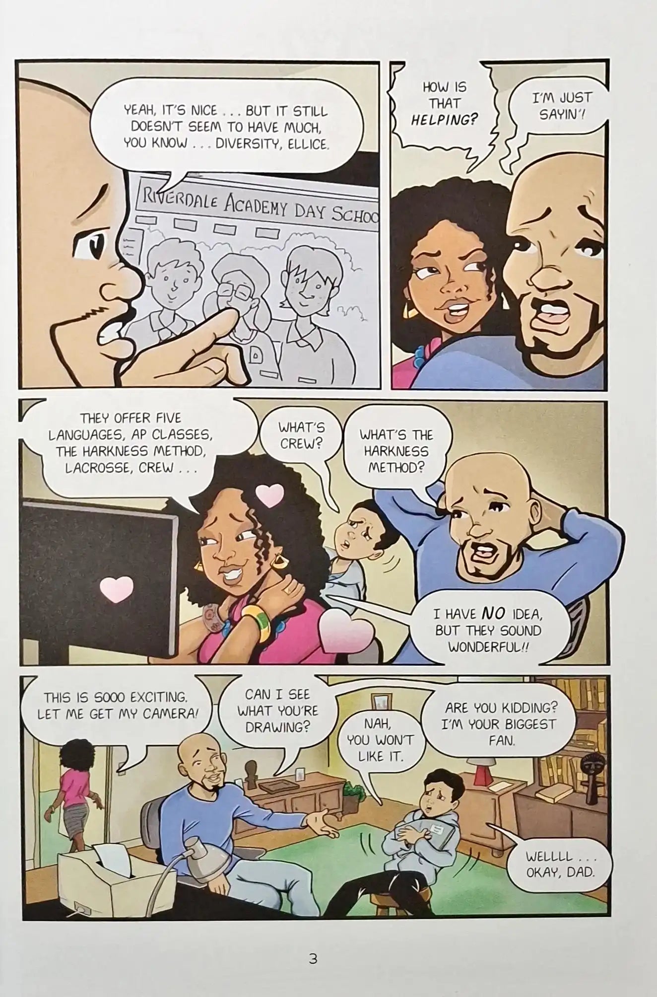 Seventh grader Jordan Banks loves drawing cartoons about his lifeβbut starting middle school isnβt turning out the way he imagined. Instead of attending an art school, Jordan is enrolled at a prestigious private academy known for its academics, where he is one of the few kids of colour in his entire grade.