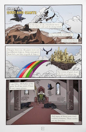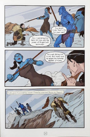Odin, father of the Viking gods, shares his favorite tales of his son, Thor! With his mighty hammer Mjolnir firmly in hand, Thor sets out to show the warlike Giants why he should be feared. But Thor finds his battles with the Giants to be anything but easy. Known for his strength, bullheadedness, and temper, Thor find himself under the thumb of many a giant before his adventures are over. Outnumbered and outsized, Thor is forced to use his brains as well as his brawn. Unfortunately, Thor's adopted brother, Loki, a Giant himself, has a habit of complicating everything. Each book in this series of Viking graphic novels features discussion questions, writing prompts, educational back matter, and a glossary.