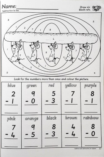 Addition and Subtraction for infants will provide students with practise in completing addition and subtraction sums up to twenty. The students are asked to complete addition and subtraction sums and then use a colour code to complete a picture.