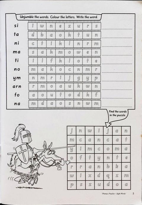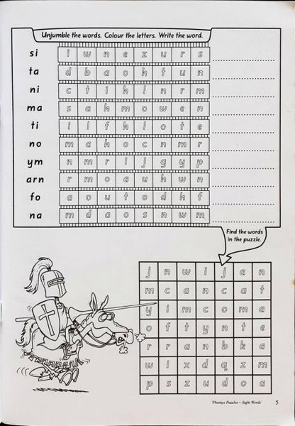 This book has been designed to help students recognize 220 commonly used words. The activities involve various types of puzzles such as crosswords and word searches which will help in the visual recognition of these sight words. The recognition of sight words can help students in developing a link between known words and unknown words in reading situations. as it is relatively easy for most students to learn sight words, it enables them to experience success and develop confidence in the early stages of learning to read. Answers included