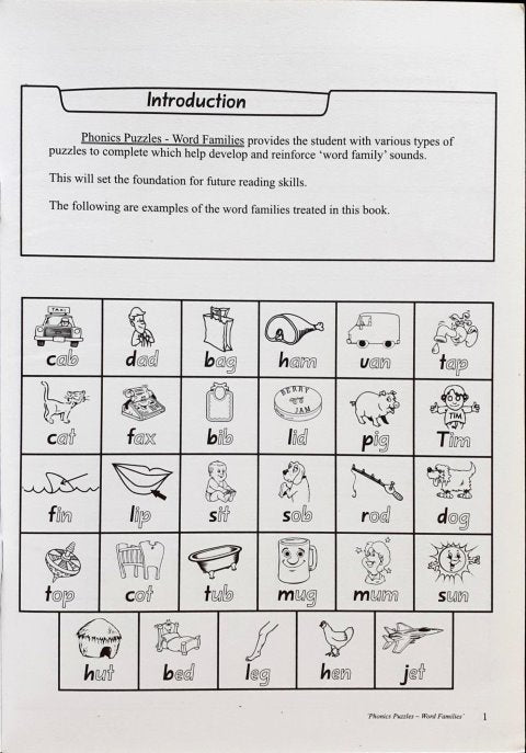 This book has been designed to help students recognise word family sounds. The activities involve various types of puzzles which will help in the aural and visual recognition of these word family sounds. These puzzles will help students develop the decoding skills needed to learn to read. Answers included.