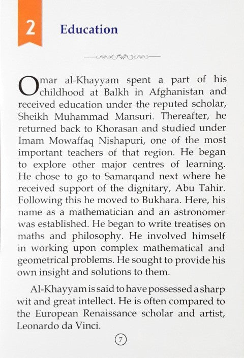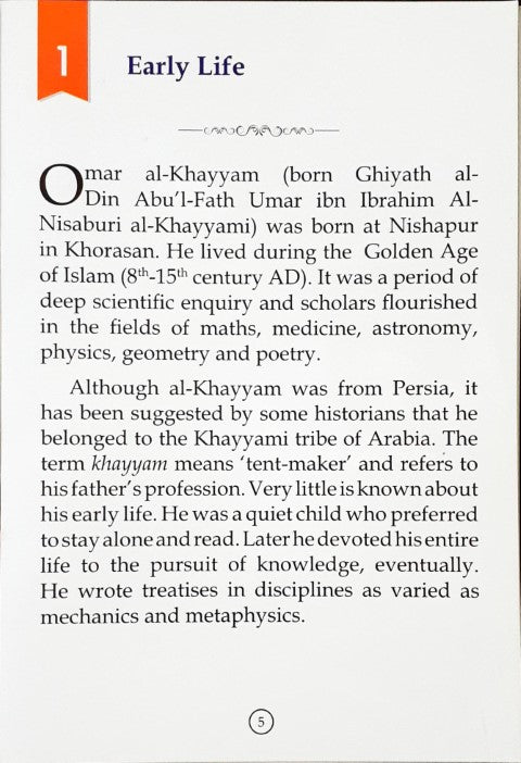 Simple & easy text for young kids with attractive colourful illustrations describing the achievements & life story of Omar Al Khayyam