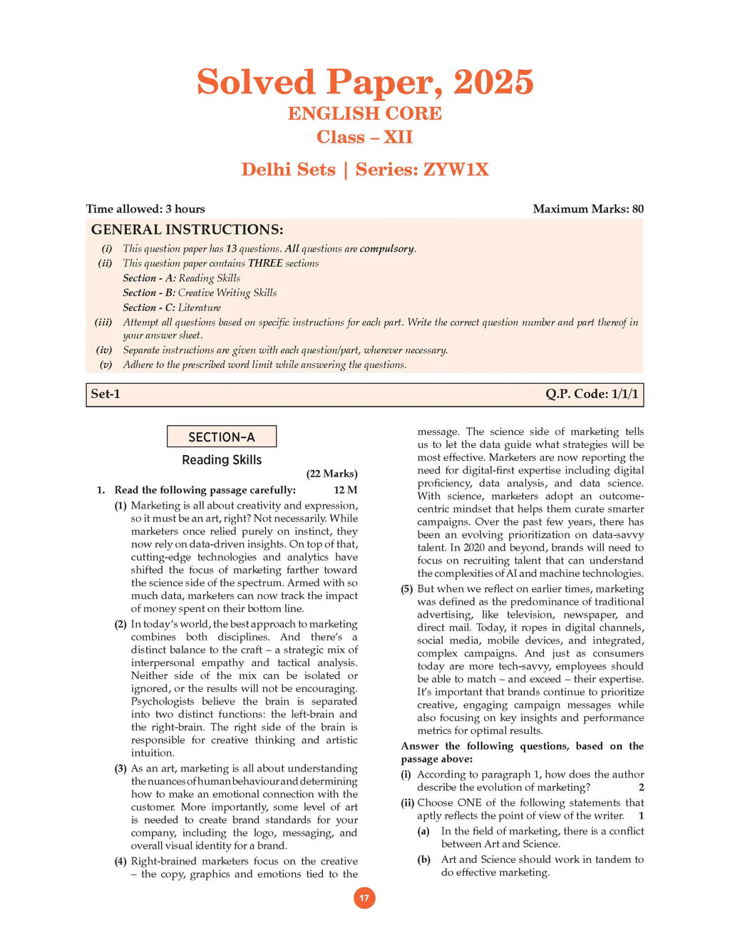 Step confidently into your CBSE Class 12 2026 exams with Oswaal’s Question Bank Set of 4. Covering English Core, History, Political Science, and Geography, this set provides 1500+ questions per subject, organized chapterwise and topicwise for focused study. Strengthen understanding with solved papers, mind maps, and revision notes. Includes CFPQs, self-assessment tests, and board-marking scheme answers to build conceptual clarity, analytical thinking, and exam confidence. Perfect for complete and effective board preparation.