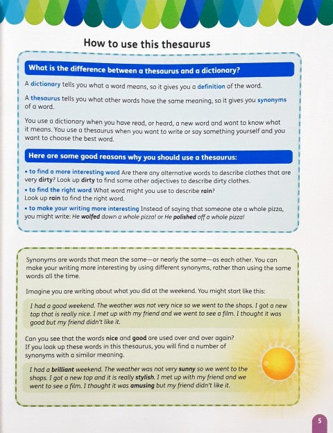 Introducing the latest edition of the Oxford Junior Illustrated Thesaurus, packed with thousands of synonyms, helpful writing tips, lists of overused words, and word webs to enhance writing skills. This user-friendly thesaurus offers simple entries and word lists, along with features on rhyming and onomatopoeic words to ignite the creativity of young writers. It's an easy-to-use and enjoyable resource brimming with words to empower brilliant and imaginative writing. Whether it's crafting stories, essays, or poems, this thesaurus is designed to inspire confident young writers on their language journey.