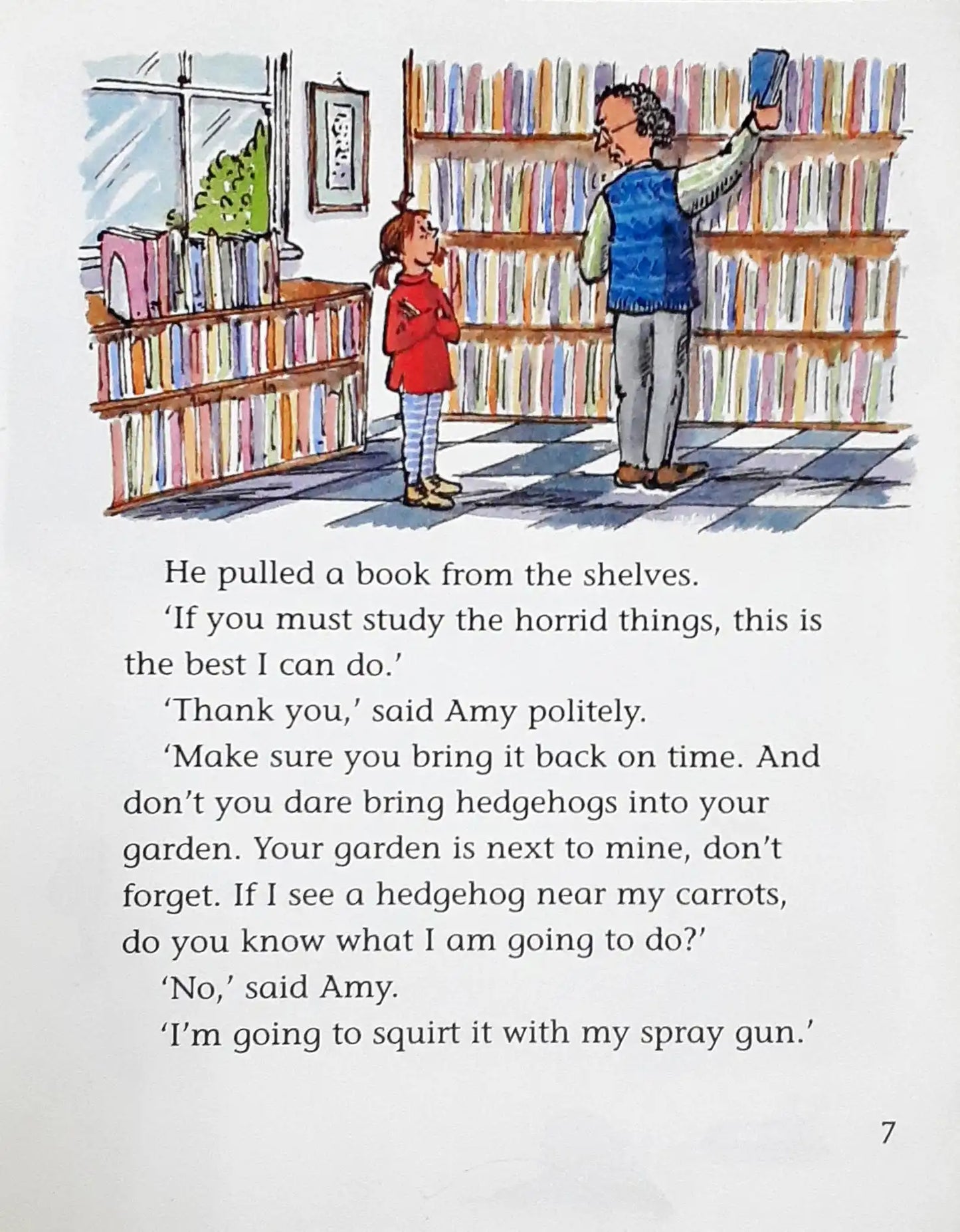 Tree Tops Oxford Reading Tree Stage 11. I am going to be an hedgehog expert - Amy tells her mother. She is hunting for hedgehog facts in the library when she stumbles on an amazing hedgehog secret. But why is the dreadful Mr Peck from next door taking such an interest? ISBN 9780199168699