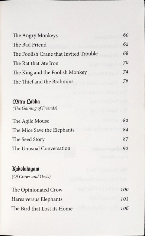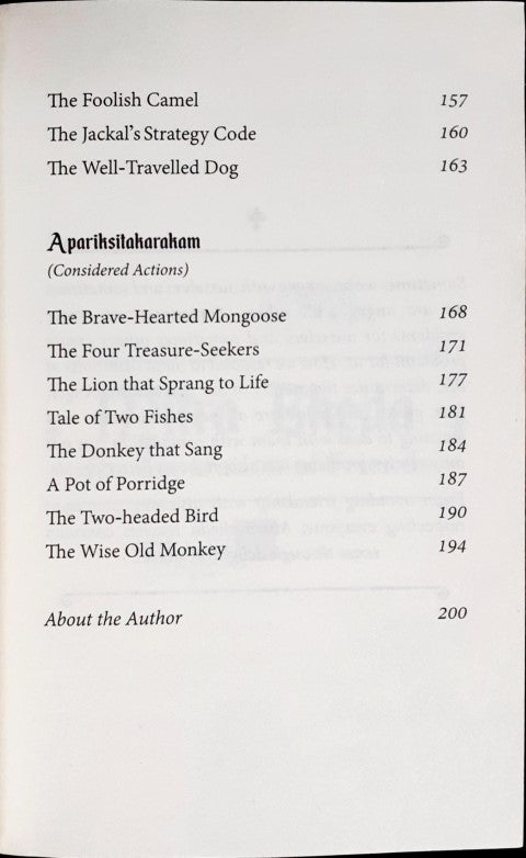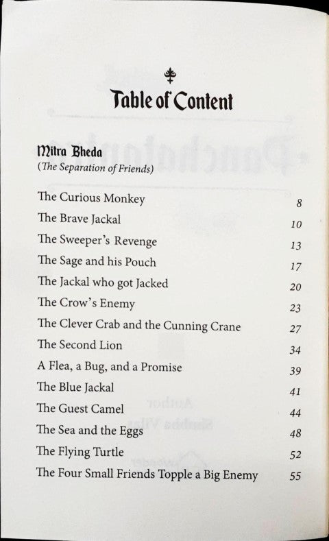 Pandit Vishnu Sharma's Panchatantra, retold by Shubha Vilas, is an amazing compilation of moral stories from the five books of Panchatantra, namely Mitra-bheda, Mitralabha, Kakolukiyam, Labdhapranasam and Apariksitakarakam. Filled with attractive illustrations by Ishan, and simple yet intriguing stories, the book is a great addition to a child's library.