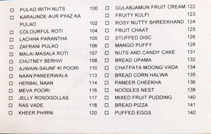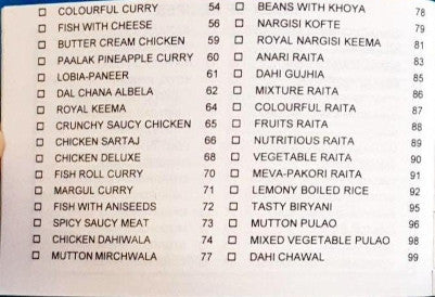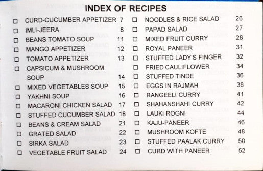Collection of 90 party recipes with colourful illustrations of the dishes. Includes Vegetarian & Non Vegetarian dishes with 7 course meal