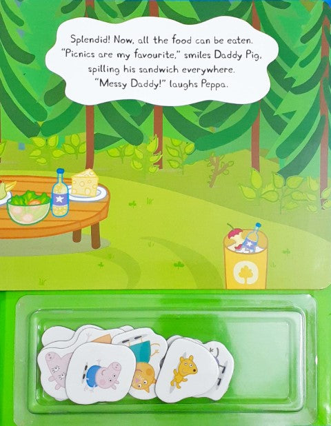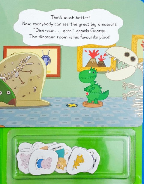 Peppa and her little brother George are having fun doing their favourite things. Join in by reading the exciting story and choosing the magnets to finish the pictures.