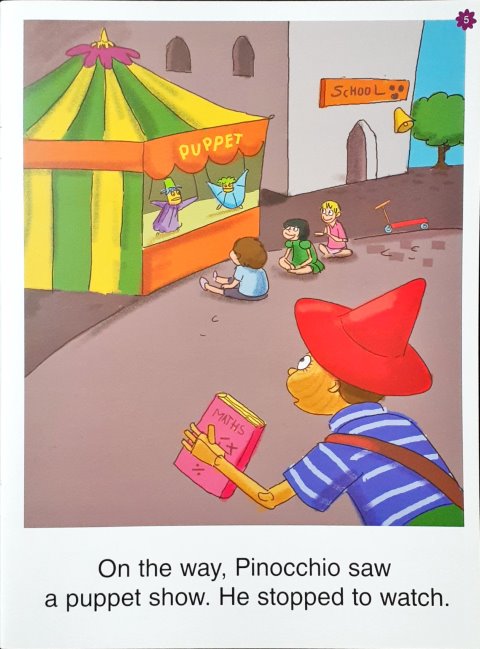Pinocchio is a naughty puppet who gets into trouble. Join him on his adventures. Difficult words are highlighted with pictures to develop a better understanding along with an activity page at the end Fairy Tales for Early Readers is a series that helps you introduce your child to the world of books. Each story has been carefully created, keeping in mind the world of the young reader. Every title is beautifully illustrated and has simple language, opening up the world of fairy tales for the early reader.