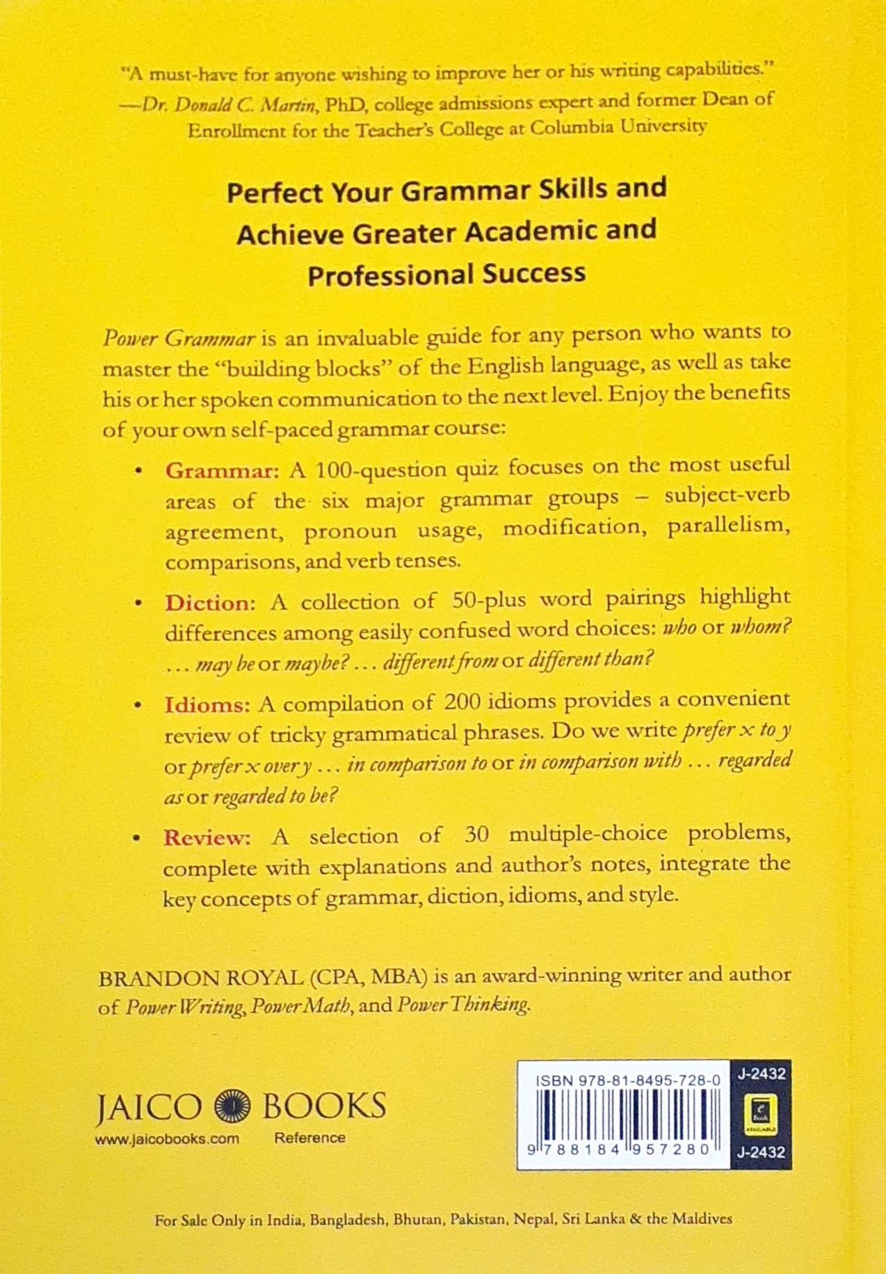 40 Powerful rules for clear and correct writing. Ace your competitive exams, master the big six grammar categories, avoid pitfalls with word choices and idioms, tackle grammar problems with confidence, special sections on punctuation and editing tips. Perfect your grammar skills and achieve greater academic and professional success. it is an invaluable guide for any person who wants to master the building blocks of the English language as well as take his or her spoken communication to the next level. Enjoy the benefits of your own self paced grammar course.