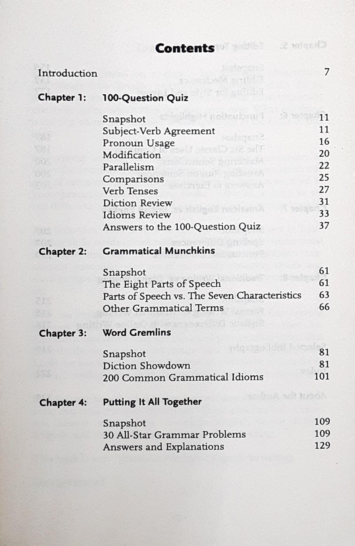 - Review - A selection of 30 multiple choice problems, complete with explanations and author's notes, integrate the key concepts of grammar, diction, idioms and style.