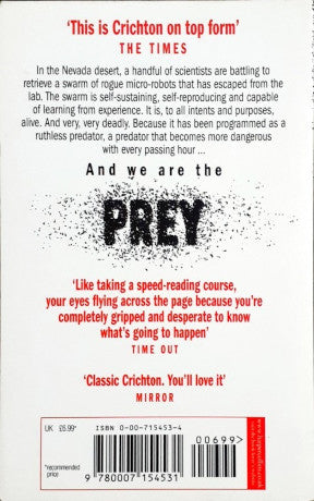 In the Nevada desert, a handful of scientists are battling to retrieve a swarm of rogue micro-bots that has escaped from the lab. The swarm is self-sustaining, self-reproducing and capable of learning from experience. It is, to all intents and purposes, alive. And very, very deadly. Because it has been programmed as a ruthless predator, a predator that becomes more dangerous with every passing hour...