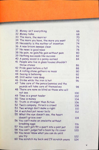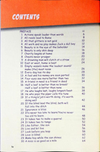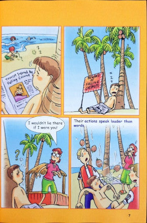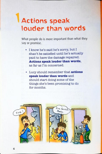 Each proverb is clearly explained with a definition, example sentences and a humorous contextual cartoon in plain everyday English