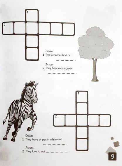 Help Stickman climb down walls, go through mazes and find his lost friend. Fill crossword grids, do simple counting exercises, match pictures to words, find missing pieces and do many other puzzles and brainteasers. The perfect activity book to creatively engage the mind of young children while developing their problem solving and thinking skills. Answers included