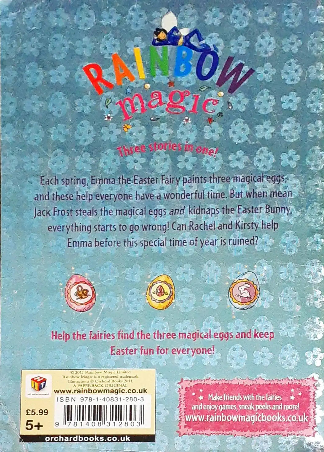 Rainbow Magic Special Edition. Each spring, Emma the Easter Fairy paints three magical eggs and these help everyone have a wonderful time. But when mean Jack Frost steals the magical eggs and kidnaps the Easter Bunny, everything starts to go wrong. Can Rachel and Kirsty help Emma before this special time of year is ruined?