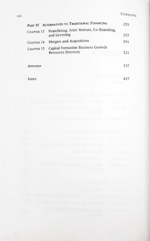 * Alternatives to Traditional Financing: franchising, joint ventures, co-branding, licensing, and other strategic alliances; mergers and acquisitions; plus the Capital Formation Business Growth Resources Directory