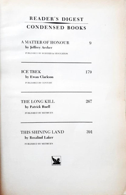 Reader's Digest 4 In 1 Condensed Books 1986 Edition A Matter Of Honour Ice Trek The Long Kill This Shining Land