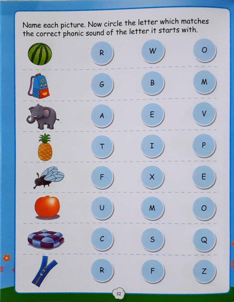It is said that the hand is the direct link to the mind. Learn phonic sounds through actions and by integrating as many senses as possible. The workbook assists our young buds in increasing their phonemic awareness by connecting letters with their phonic sounds, through interesting exercises. Exercises to identify and circle objects to show the correct beginning sound, exercises to complete words by filling in the correct phonic sound letter, exercises to match letters to their phonic sounds, fun picture matching exercises