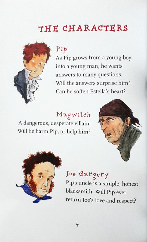An escaped convict threatens to eat young Pip s heart for breakfast. The ghostly Miss Havisham invites Pip to her eerie home. A mysterious benefactor makes him suddenly wealthy. Pip s life will never be the same again. Pride, humility, love, loyalty and shame compete for Pip s emotions. Will his quest to become a gentleman enable him to melt the cold heart of the beautiful Estella, or will it destroy his happiness? Pip s tale is full of mystery and surprises. What is the nature of Miss Havisham s interest in him? Why does Estella want to break his heart? Why does the dangerous convict return? Most importantly, who has given Pip his great expectations?