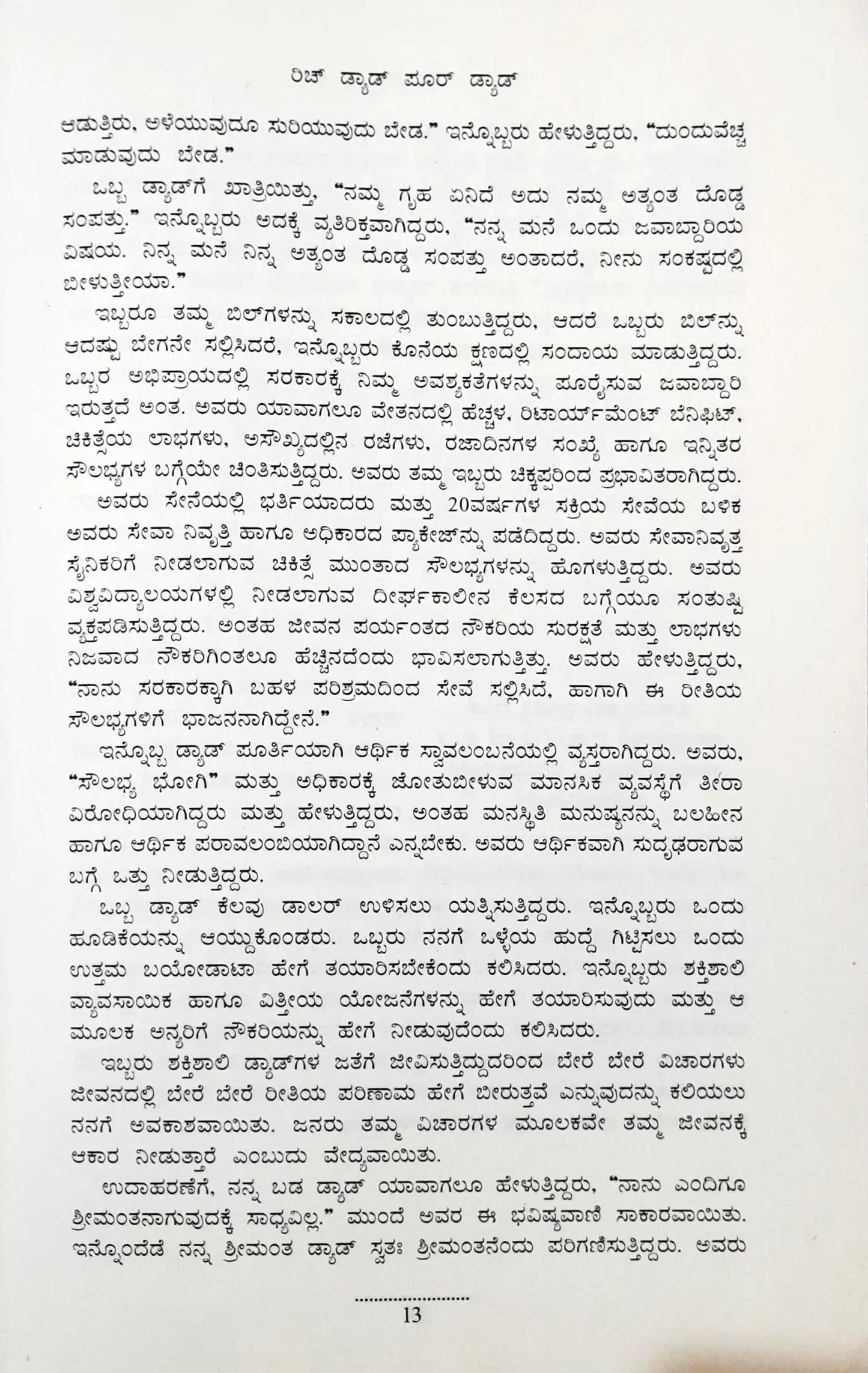 Rich Dad Poor Dad is Robert's story of growing up with two dads — his real father and the father of his best friend, his rich dad — and the ways in which both men shaped his thoughts about money and investing. The book explodes the myth that you need to earn a high income to be rich and explains the difference between working for money and having your money work for you.