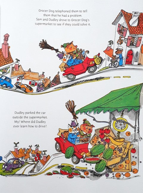 Get ready for an exciting new edition of a classic Scarry title, complete with a stunning retro cover. Join Sam Cat and Dudley Pig as they embark on a thrilling adventure in pursuit of a mischievous thief!