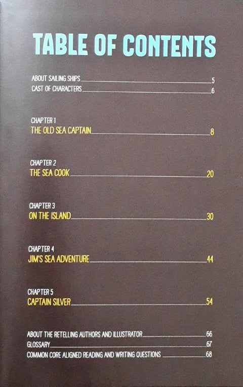 Jim Hawkins discovers an old treasure map and sets out on a harrowing voyage to a faraway island, and runs into the violent sea along with many dangerous men seeking the same treasure. Written in graphic-novel format. These reader-favorite tiles are now updated for enhanced Common Core State Standards support, including discussion and writing prompts developed by a Common Core expert, an expanded introduction, bolded glossary words and dynamic new covers.