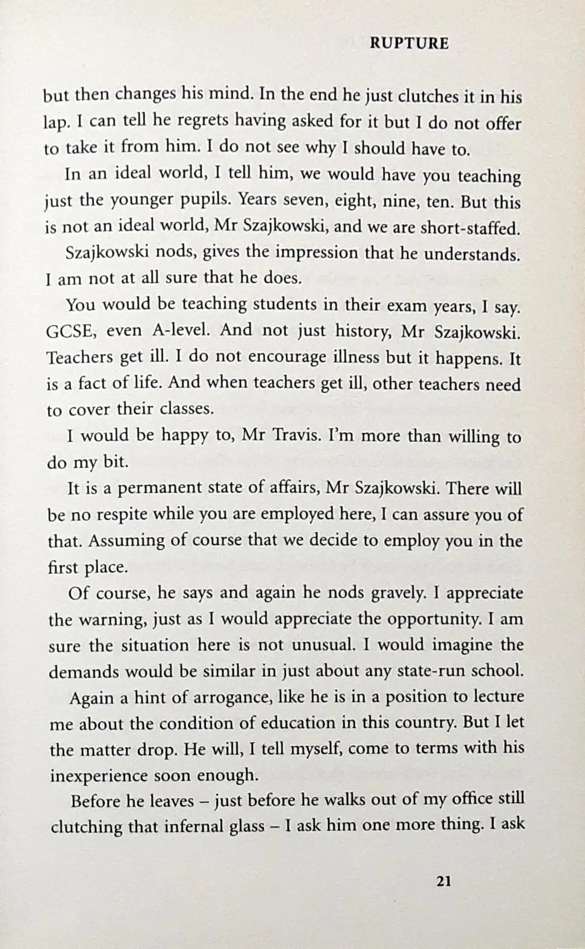 A narrative tour de force from a formidable new voice in fiction, Rupture offers a chilling look at the secrets that lie behind a seemingly senseless act of violence and the lengths one will go to uncover the truth.
