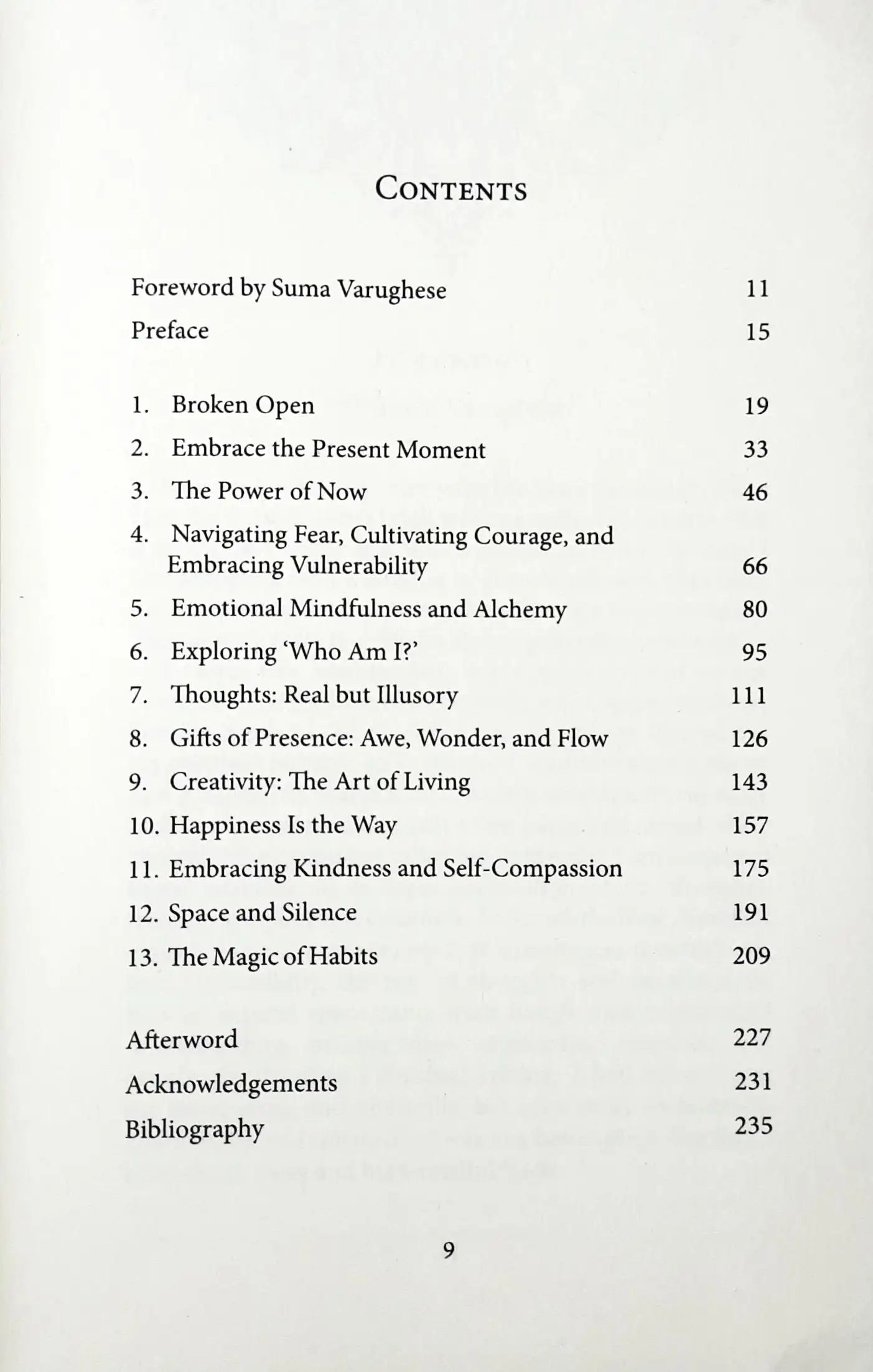 Across thirteen insightful chapters, the author explores how to stay rooted in the present, navigate emotional storms, and harness the power of mindfulness and meditation. Each chapter offers deeply personal reflections alongside practical exercises that guide readers toward clarity, calm, and creative renewal.