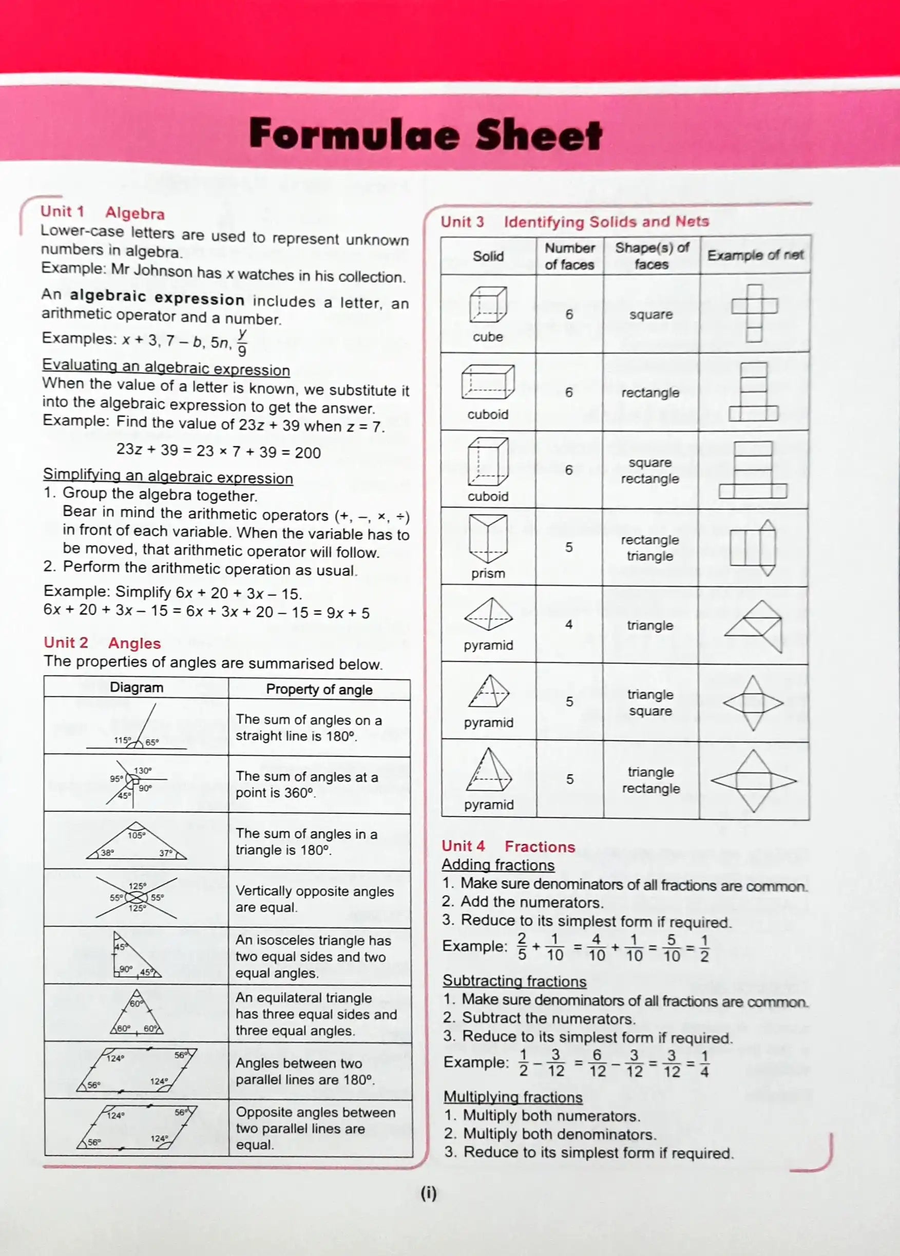 - Formulae Sheet: Quick reference to essential mathematical formulas for easy revision.