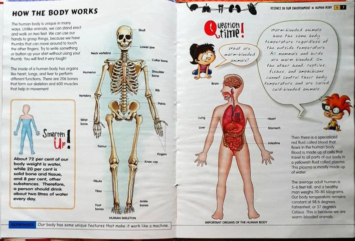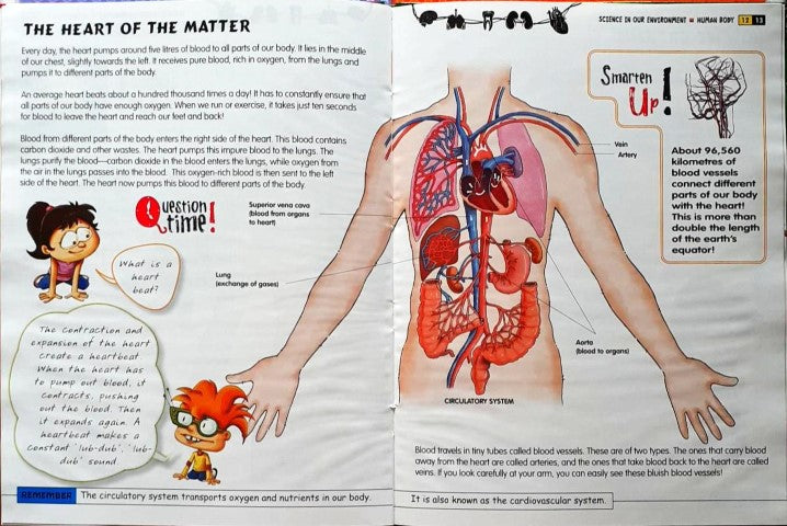 The human body is very similar to a machine, with separatemechanisms that work together to keep us healthy. In this book,learn about the different systems, such as the respiratory and thecirculatory system, among others, that keep our body functioningnormally. Also read little Teri's questions as well the GreenGenius's answers about the way the human body works.