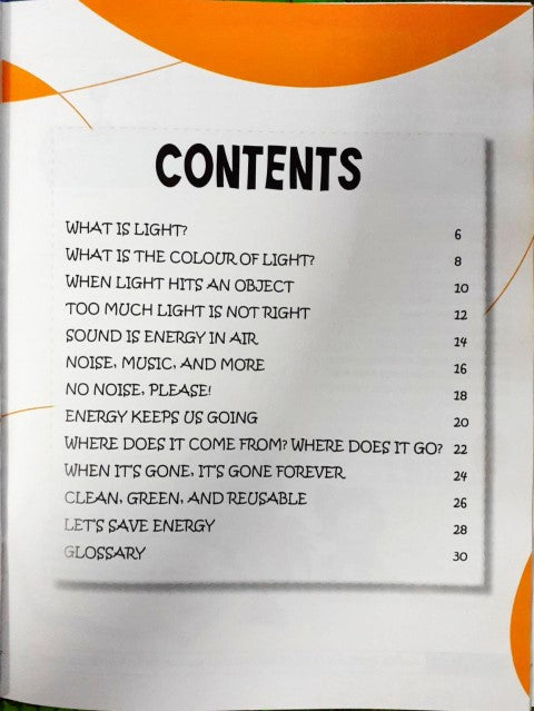 Light is a form of energy made up of tiny particles called photons. Sound is nothing but the vibration of air molecules, when they gain energy. Without energy there would be no light, no sound and no action! Read this book to learn about the different forms of energy. Follow the questions and answers between the Green Genius and little Teri, to unearth facts about different forms of energy and tips on how to save it.