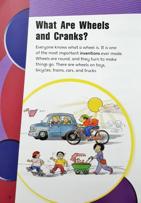 Introduces the principles of wheels and cranks as simple machines, using examples from everyday life.