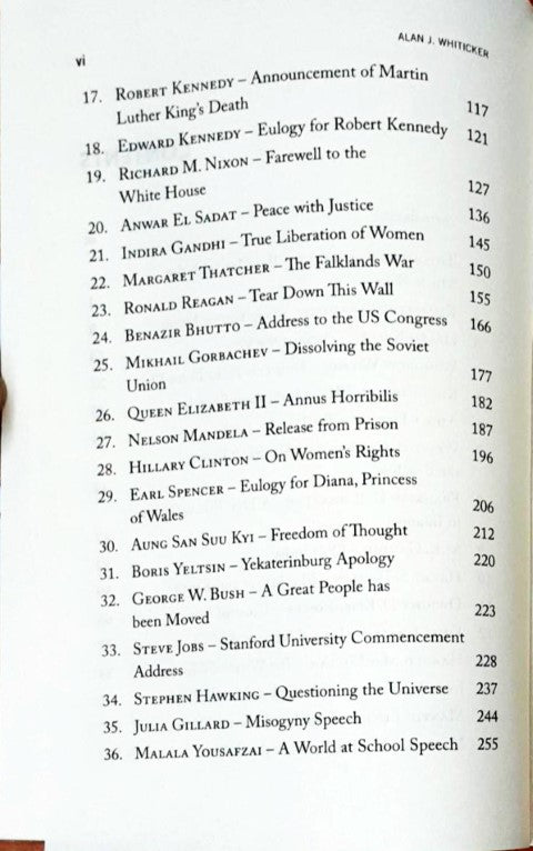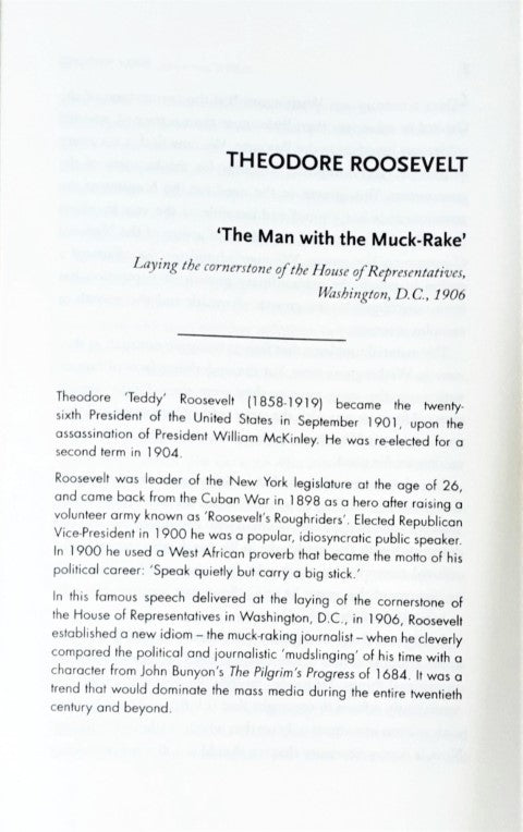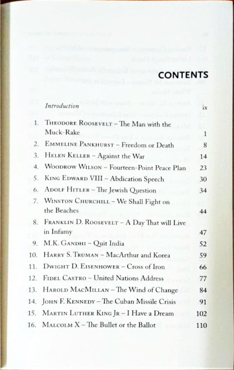 In this brilliant collection, many of history’s greatest orators and pivotal moments are featured. These speeches shaped and changed the world. Different eras and many nations are represented, with several speeches from famous women—speeches of clarity and hope. Along with famous names like John F. Kennedy, Martin Luther King, Franklin D. Roosevelt, Winston Churchill, Mahatma Gandhi, Nelson Mandela, Margaret Thatcher and Hillary Clinton there are also lesser known orators who are remembered for making their mark on history.