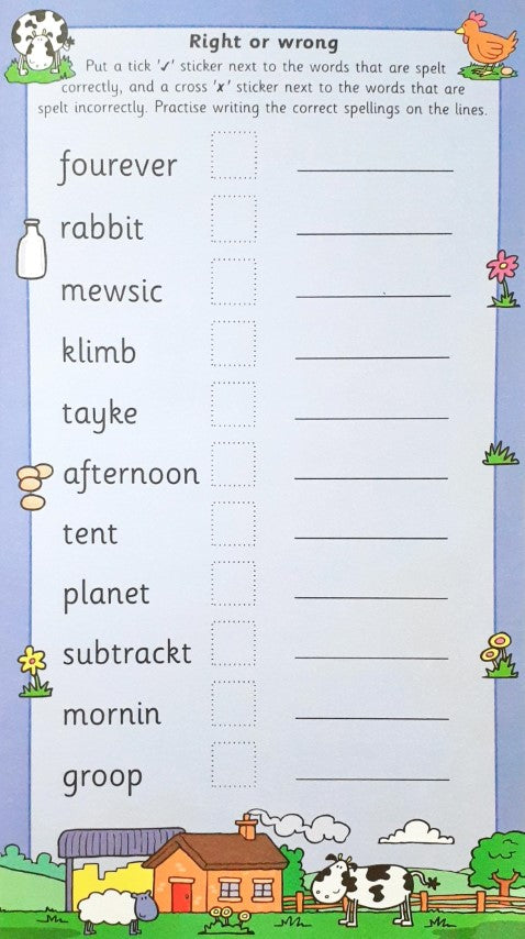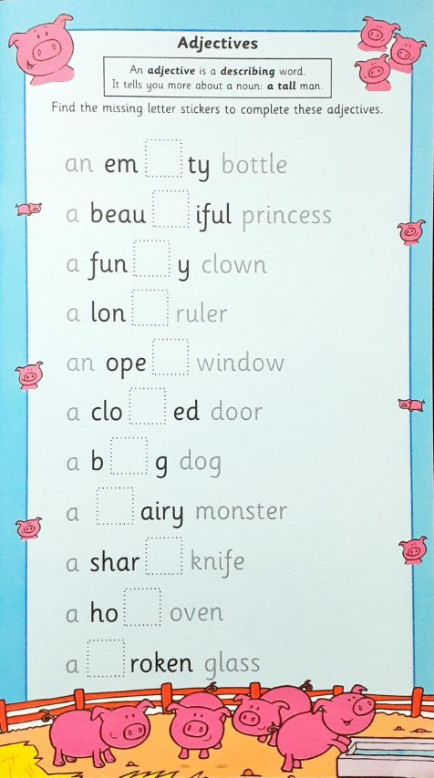 This colourful sticker book is designed to help children develop their spelling skills and includes colourful letter stickers to find and complete spellings, space to practise new words, answers for immediate feedback, clear layout for easy use. Children will enjoy making words with the left over stickers