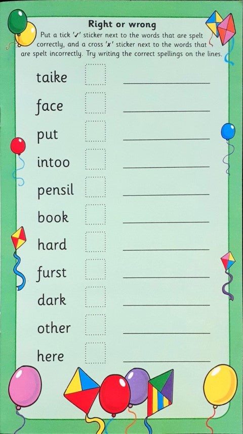 This colourful sticker book is designed to help children develop their spelling skills and includes colourful letter stickers to find and complete spellings, space to practise new words, answers for immediate feedback, clear layout for easy use. Children will enjoy making words with the left over stickers