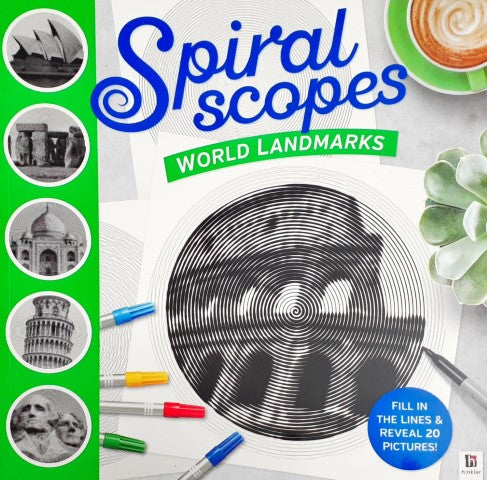 What may look like a mere spiral on the page becomes an amazingly detailed image once the spiral is coloured in with a marker pen. Adoptees of this innovative new pastime will be amazed as an impressive array of world-renowned landmarks emerge from each spiral. Spiralscopes is Hinkler's new format to watch, with its truly unparalleled approach to the adult colouring trend!